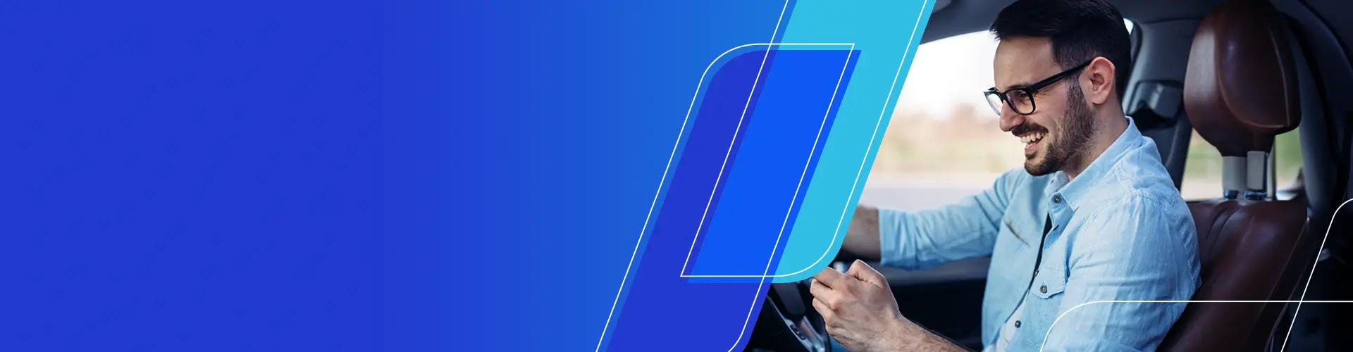Imagem de uma mulher sorrindo dentro de um carro, mostrando a chave dele com uma mão e, com a outra, segurando o volante.